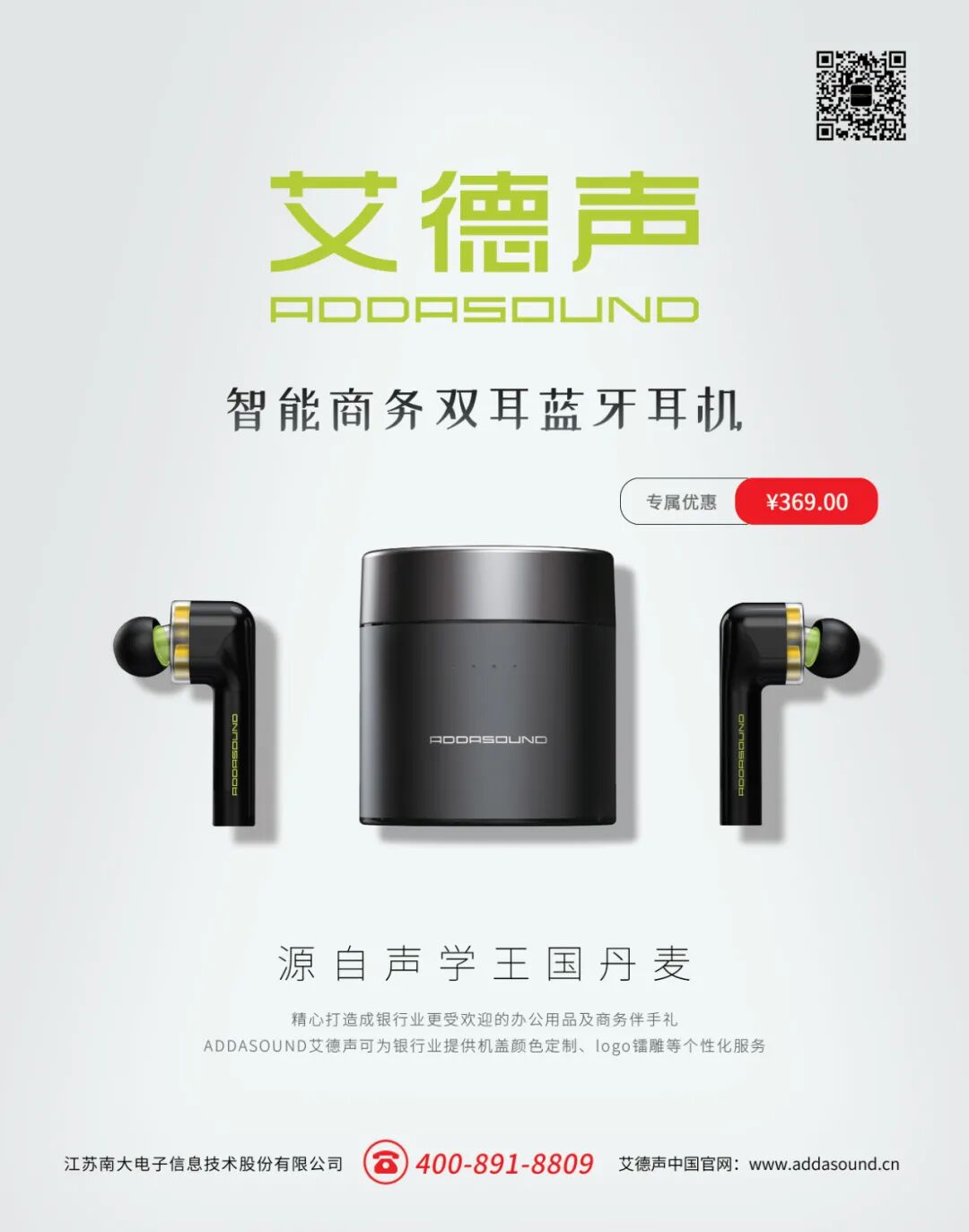 凭借品牌与技术优势,艾德声持续创新研发,不断迭代优化,相继推出多款明星产品。近日,由艾德声最新研发的ADDASOUND A2艾德声智能双耳商务蓝牙耳机(简称ADDASOUND A2)横空出世,让人眼前一亮。ADDASOUND A2由丹麦艾德声技术团队匠心打造,传承了艾德声在声学领域的非凡造诣及北欧典雅、简约风格,外观精致且更有质感,尽显商务休闲魅力;黑色烤漆搭配醒目的ADDASOUND标志,彰显品牌大气与时尚。在技术方面,ADDASOUND A2搭载领先的蓝牙5.0技术,传输速度更高,通讯距离更长,让沟通不在有“线”制;内置高端蓝牙芯片组,独有APTX技术,支持HIFI无损音频传输,支持多点HFP连接,可同时连接两台蓝牙设备。
